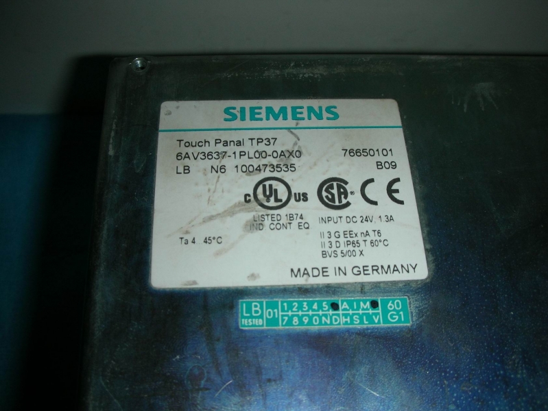 6AV3-637-1PL00-0AX0 Manufactured by SIEMENS OPERATOR INTERFACE 10.4INCH TOUCHSCREEN COLOR TP37 Weight: 14.16 lbs