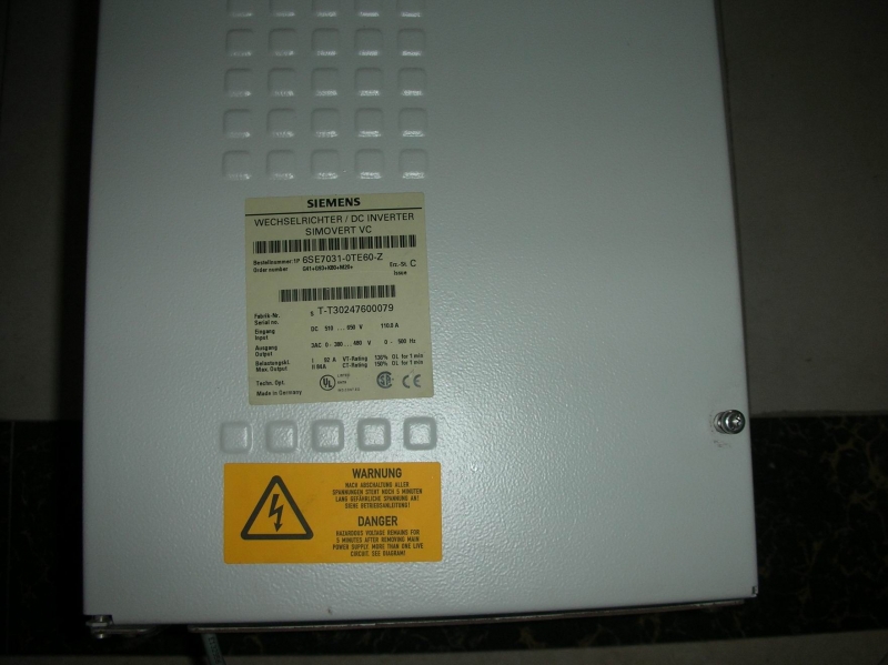 6SE70310TE60 Manufactured by SIEMENS INV,DC,460V,3PH,45KW,92A,VCH Weight: 121 lbs